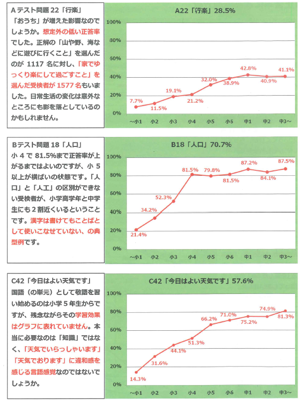 以下は、今回のテストの結果に関する本部から頂いた講評の一部です。
